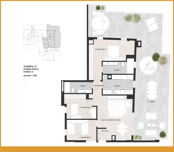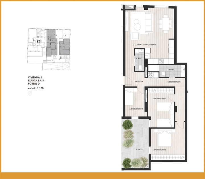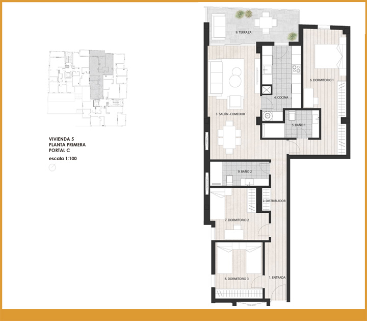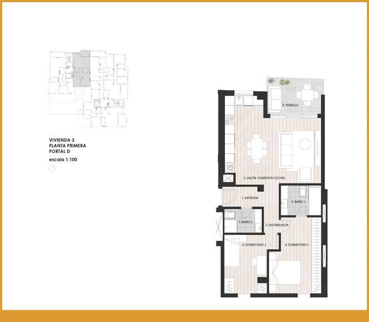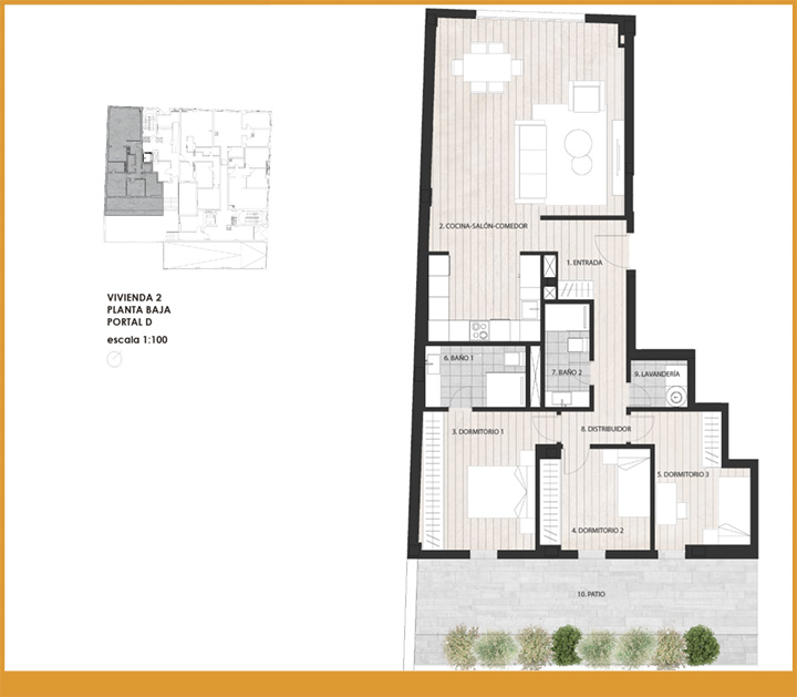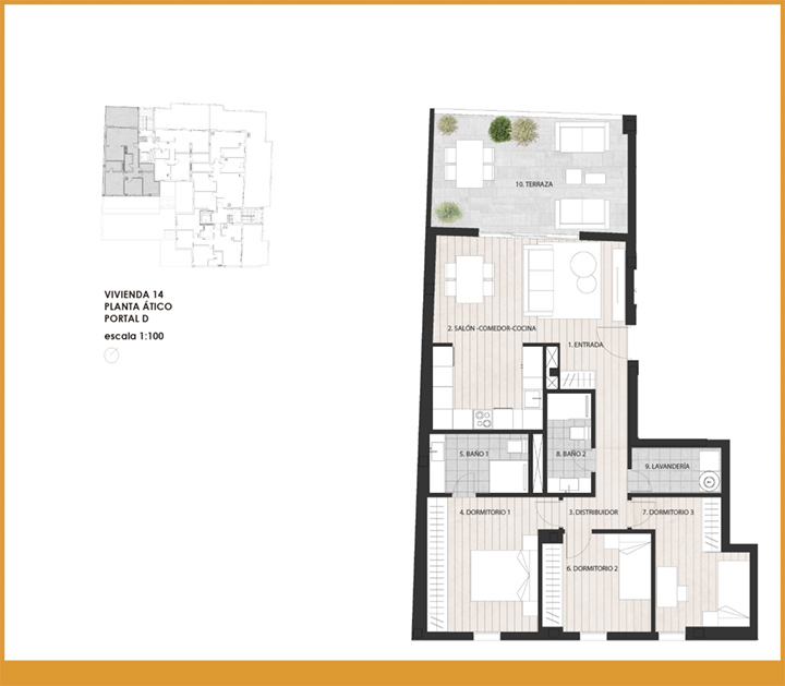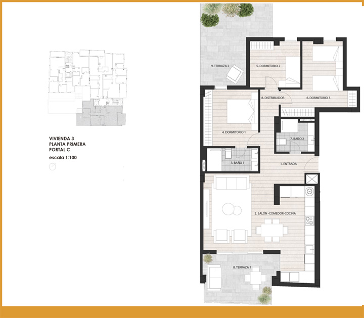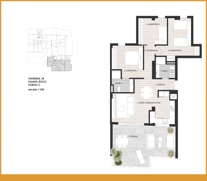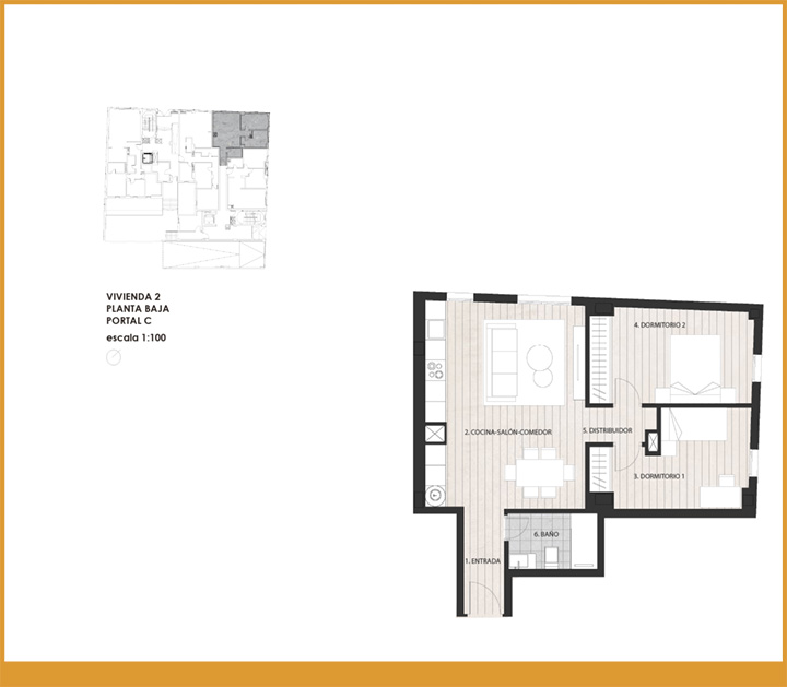 Area de superficie: Viviendas de 2 y 3 dormitorios
